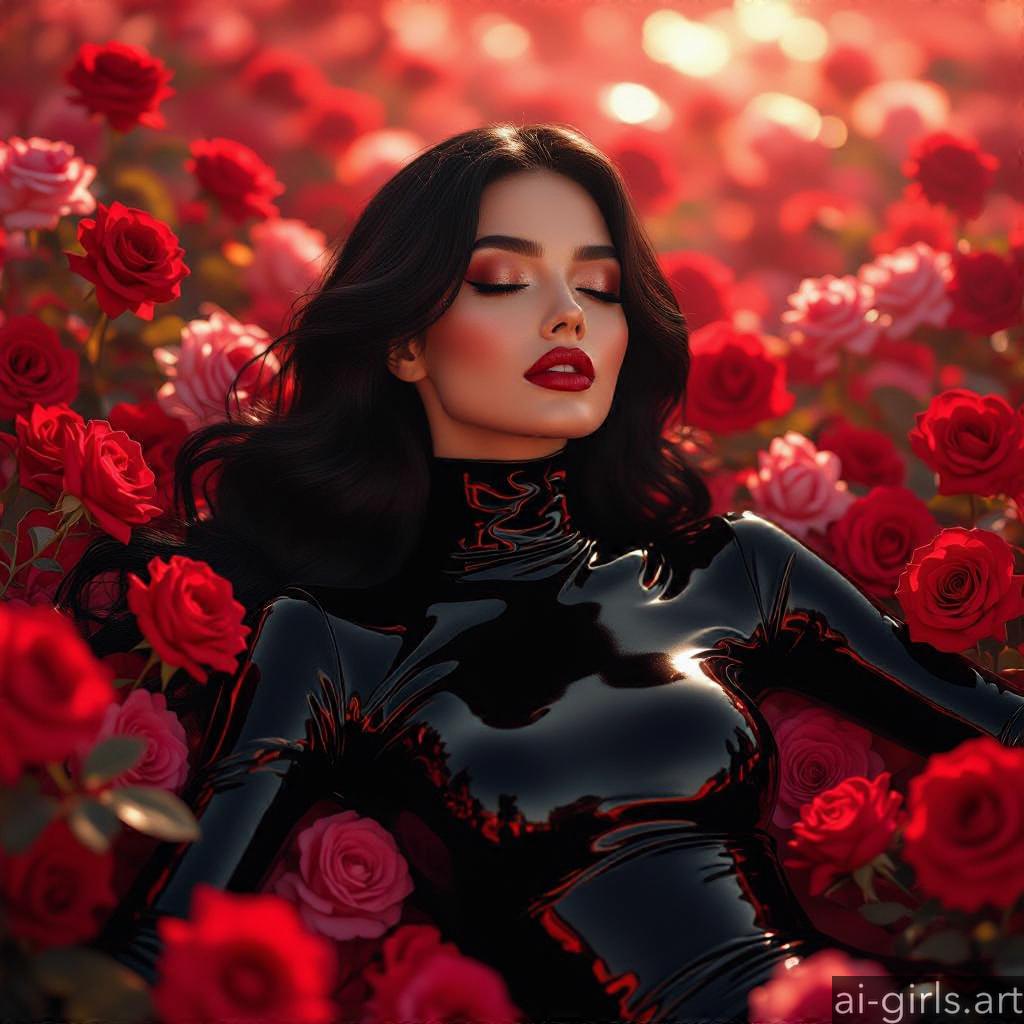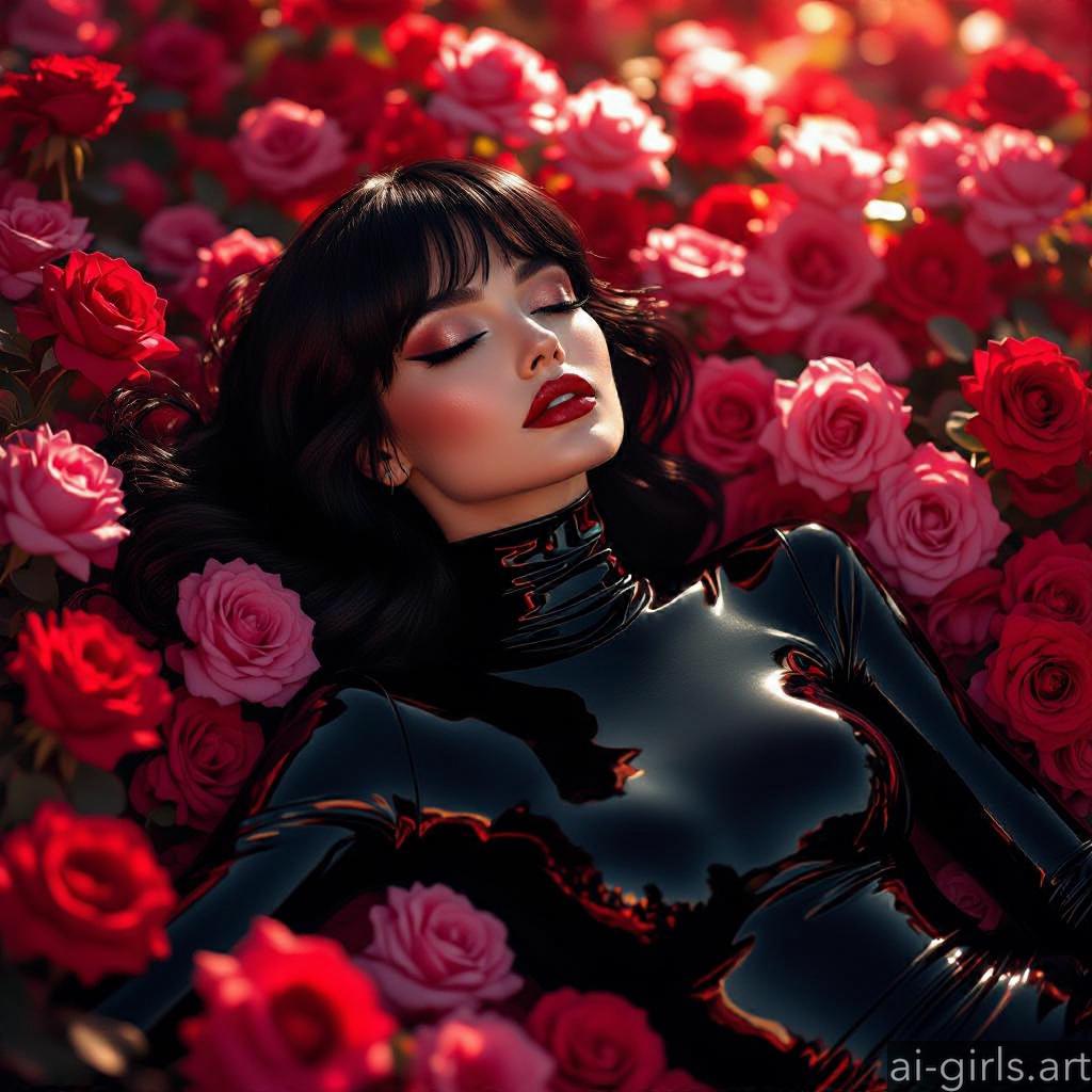 AI girls in latex lying on roses.